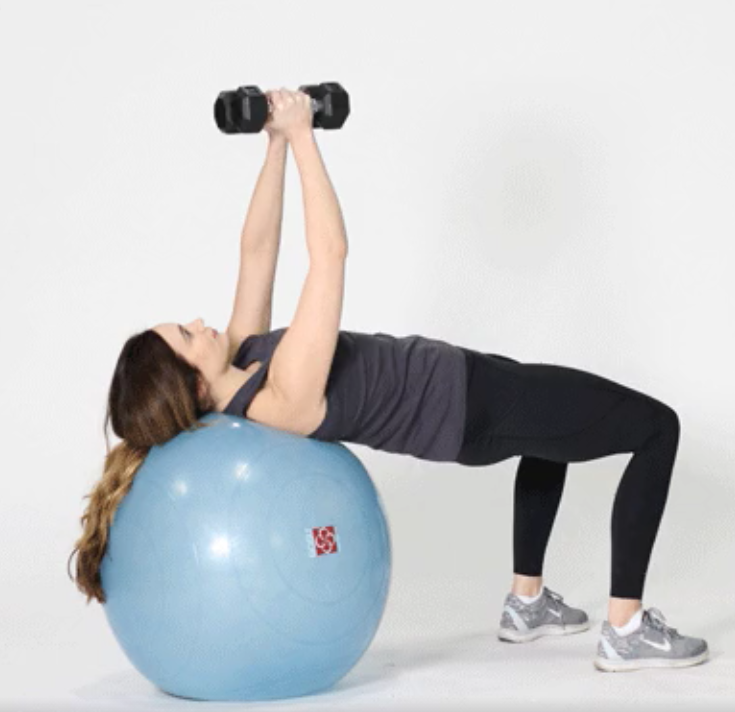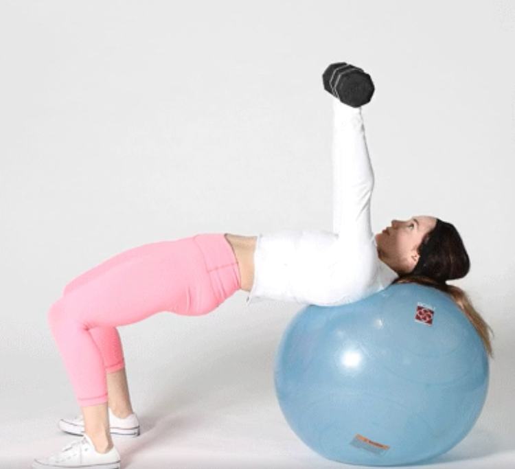 For this exercise you need a ball and dumbbells of 2 kilograms.