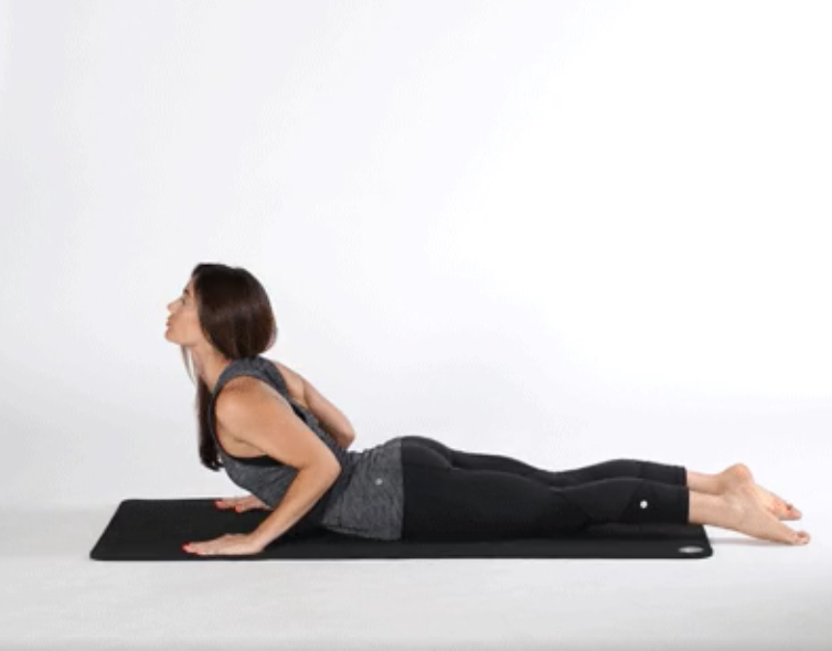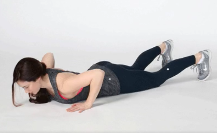 From the elongated position on the abdomen, with the lengths lengthened and the tips of the legs resting on the floor. Put your hands directly under the shoulders. Start lifting the head and the chest on the ground while shaking your shoulders and keep your neck neutral. Keep the location for 30 seconds. Repeat three times.