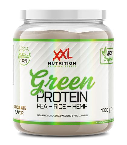 One of the recommended proteins in our interval is the green protein. Many proteins derive from animal products, but for all those looking for 100 %vegetable protein drink, there are green proteins. Contains pea proteins, rice and hemp. It also adds Konjac rubber fibers (Glucomannan) so that a green protein smoothie gives you a longer satiety. The green protein contains 77.7 grams of vegetable protein per 100 grams (vanilla flavor).